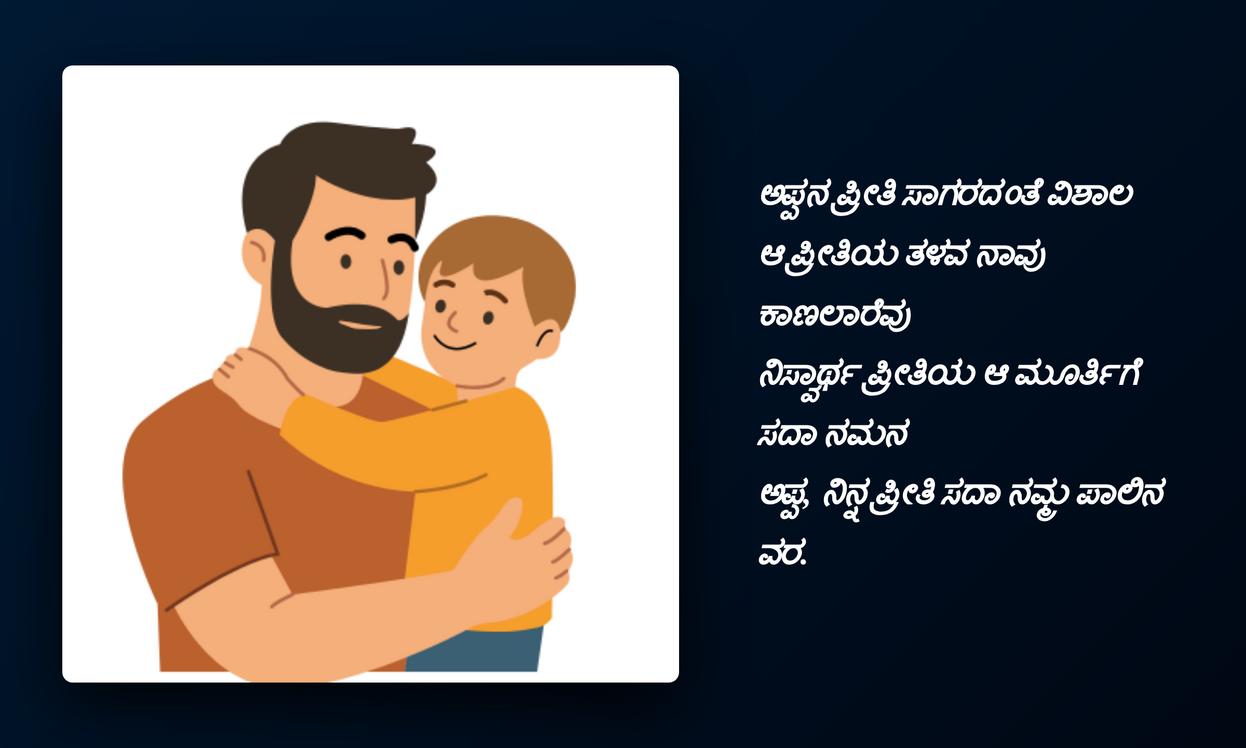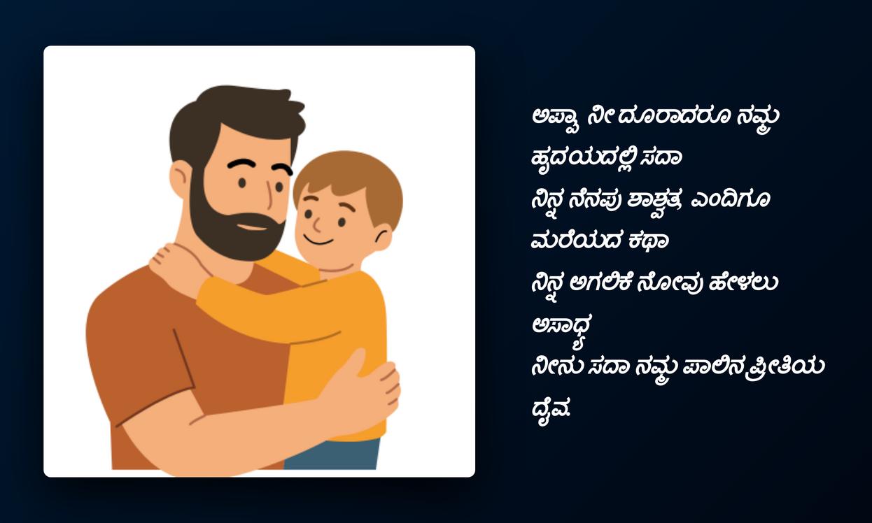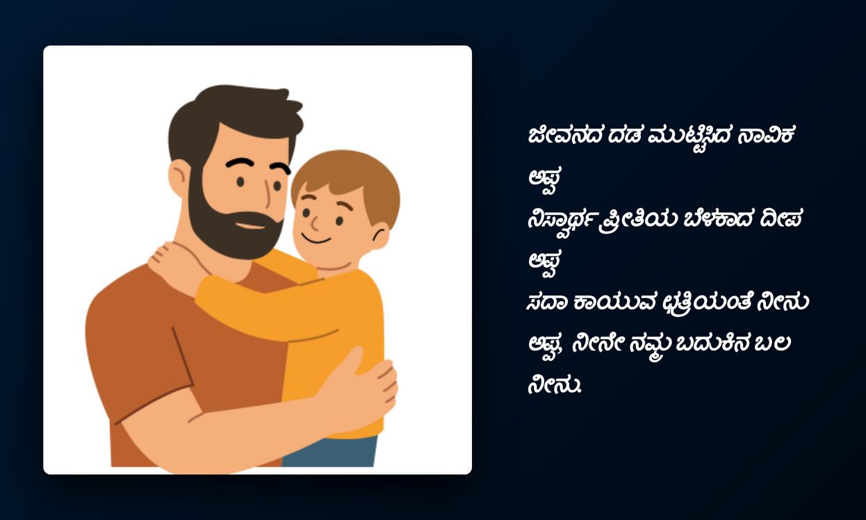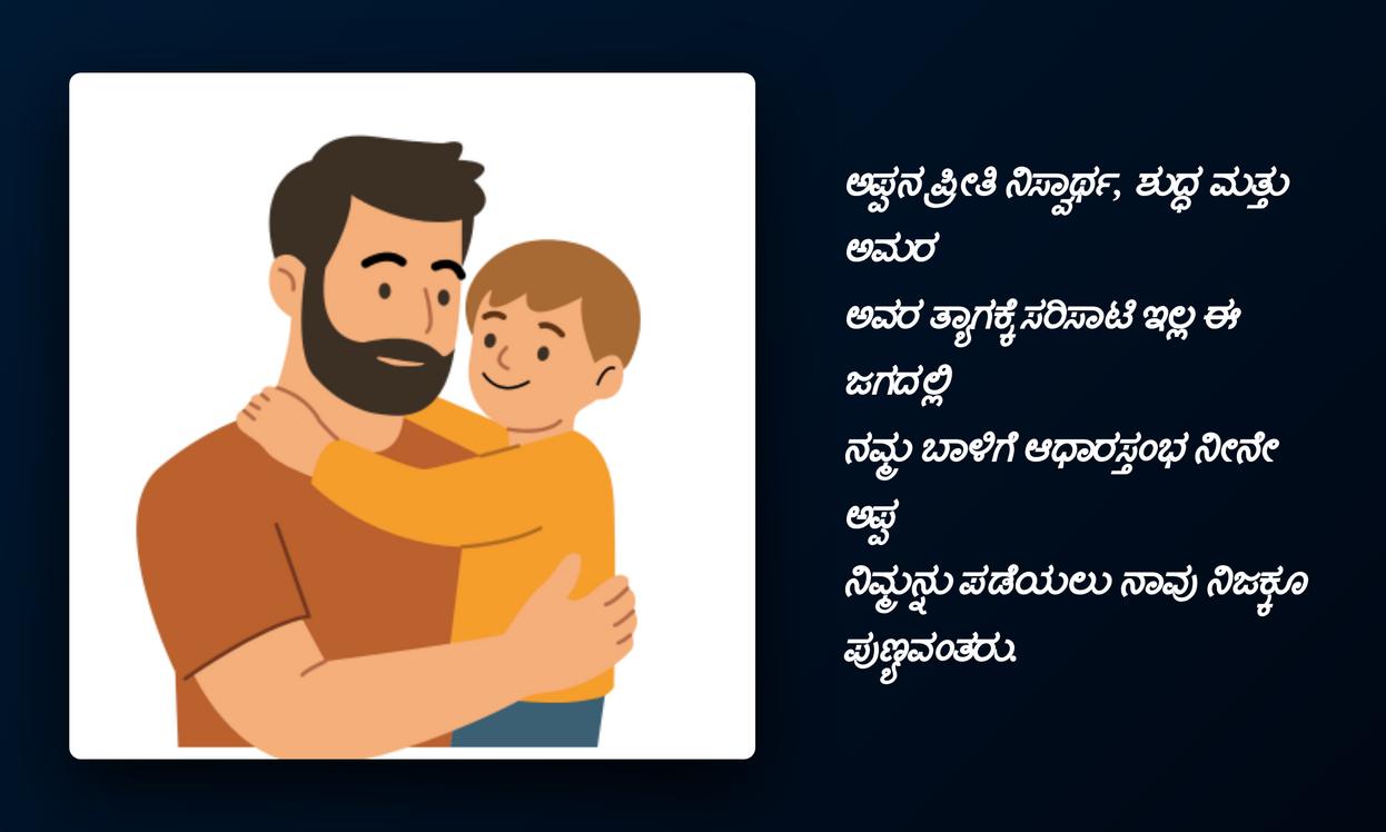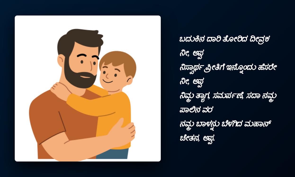 ఈ Appa quotes మన ఆన్‌లైన్ ఐడెంటిటీలో ఒక భాగం అవుతాయి. అవి మన feelingsను, ప్రేమను వ్యక్తపరిచే ఒక ప్రత్యేకమైన పద్ధతి. తండ్రి మన జీవితంలో పోషించిన పాత్రను, ఆయన అందించిన ప్రోత్సాహాన్ని ప్రతిబింబిస్తాయి. కన్నడ భాషలో ఉండే ఈ quotes స్థానికతను, హృదయానికి దగ్గరైన భావాలను సులభంగా తెలియజేస్తాయి. ప్రతి DP, ప్రతి status మన నాన్న గొప్పతనాన్ని, మన అనుబంధంలోని మాధుర్యాన్ని చాటిచెప్పే అవకాశాన్ని కల్పిస్తుంది.