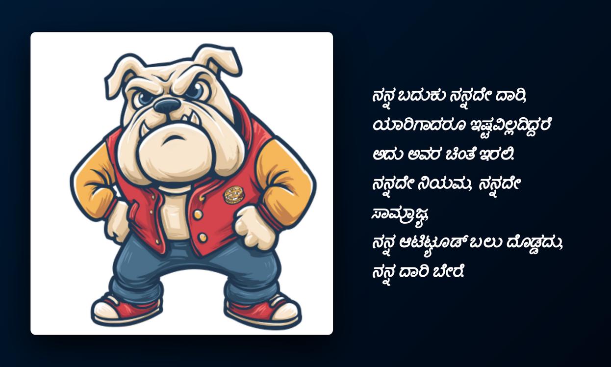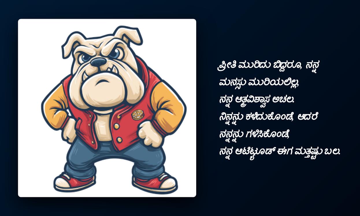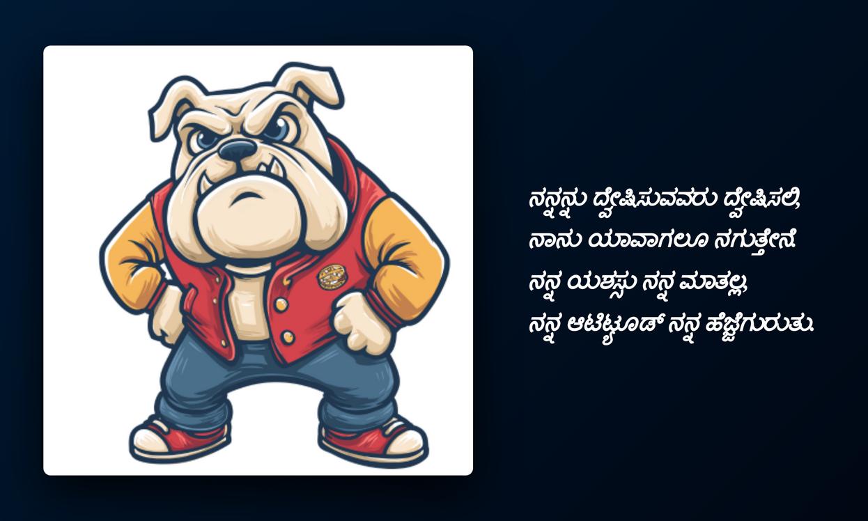 ప్రతి ఒక్కరి జీవితంలోనూ స్వీయ-వ్యక్తీకరణ చాలా ముఖ్యం. మీ డీపీకి లేదా పోస్ట్‌లకు సరైన ఆటిట్యూడ్ కోట్‌ను ఎంచుకోవడం ద్వారా, మీరు మీ ఫీలింగ్స్‌ను, మీ నమ్మకాలను ప్రపంచానికి చాటిచెప్పవచ్చు. ఈ కన్నడ ఆటిట్యూడ్ కోట్స్ మీకు స్ఫూర్తిని, ధైర్యాన్ని ఇస్తాయి, తద్వారా మీరు దైనందిన సవాళ్లను మరింత ధైర్యంగా ఎదుర్కొంటారు. ఈ కోట్స్‌ని ఉపయోగించి మీ సోషల్ మీడియా ప్రొఫైల్ మరింత ఆకర్షణీయంగా, మీ వ్యక్తిత్వానికి అద్దం పడుతుంది.