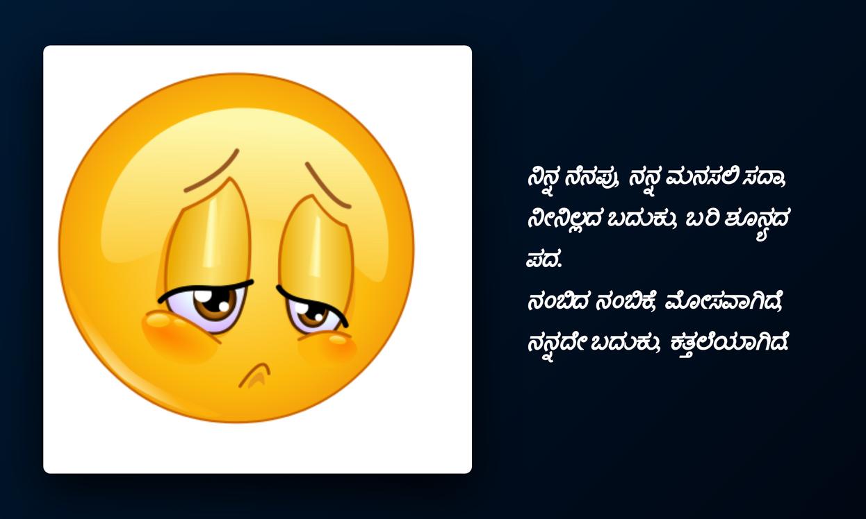 ఈ కోట్స్ కేవలం పదాలు మాత్రమే కావు, అవి మన హృదయానికి అద్దం పడతాయి. బాధలో ఉన్నప్పుడు, మనలాగే ఎవరైనా ఉన్నారని తెలుసుకుంటే కొంచెం ఓదార్పు లభిస్తుంది. కన్నడ సాడ్ కోట్స్ లోని ప్రతీ పదం మన లోపలి నొప్పిని అర్థం చేసుకున్నట్లు అనిపిస్తుంది. అవి మన బాధను పంచుకోవడానికి, మనలోని Feelings ని బయటపెట్టడానికి ఒక అవకాశం కల్పిస్తాయి, తద్వారా మనం ఒంటరిగా లేమని గ్రహిస్తాం.